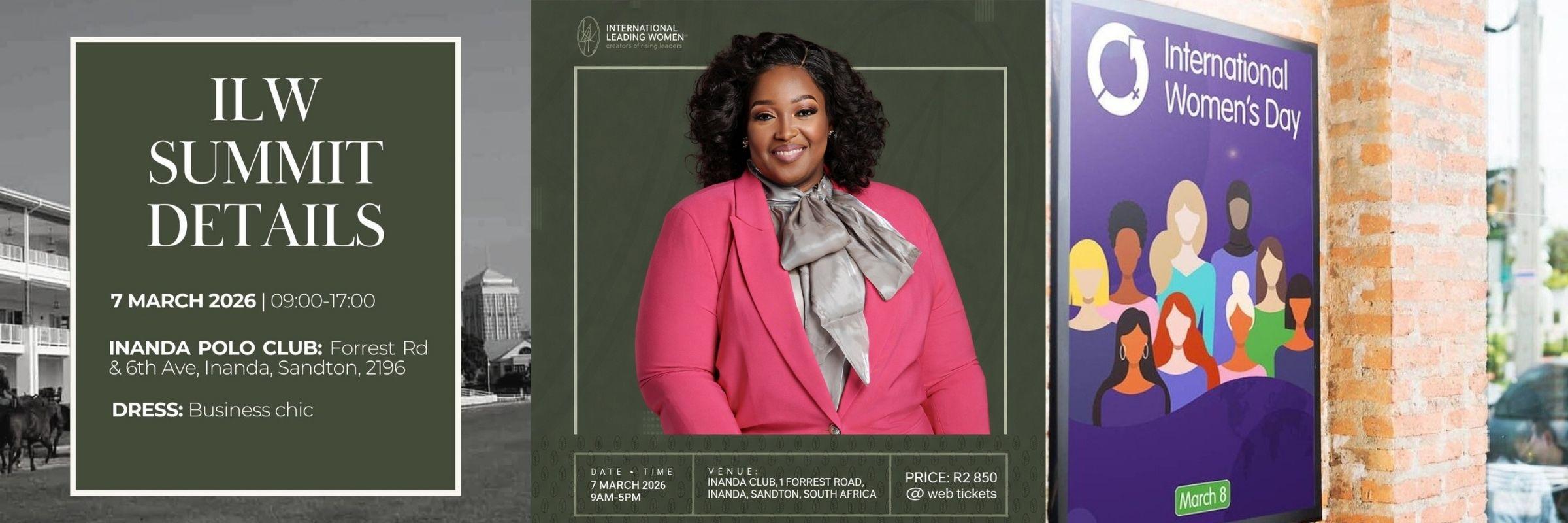 The International Leading Women Summit takes place on 7 March 2026 at the Inanda Polo Club in Sandton. It is a gathering of visionary business women committed to shaping industries, influencing economies, and transforming generations.