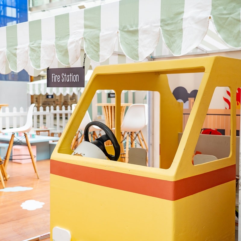 Children are invited to step into a world of make-believe, where learning happens through play. The activation features a variety of themed zones. Including a Fire Station, Police Station, Vet, Beauty Salon, Medical Centre, Café and Market with a variety of thoughtfully curated props and dress-up attire that support the natural curiosity of young minds.